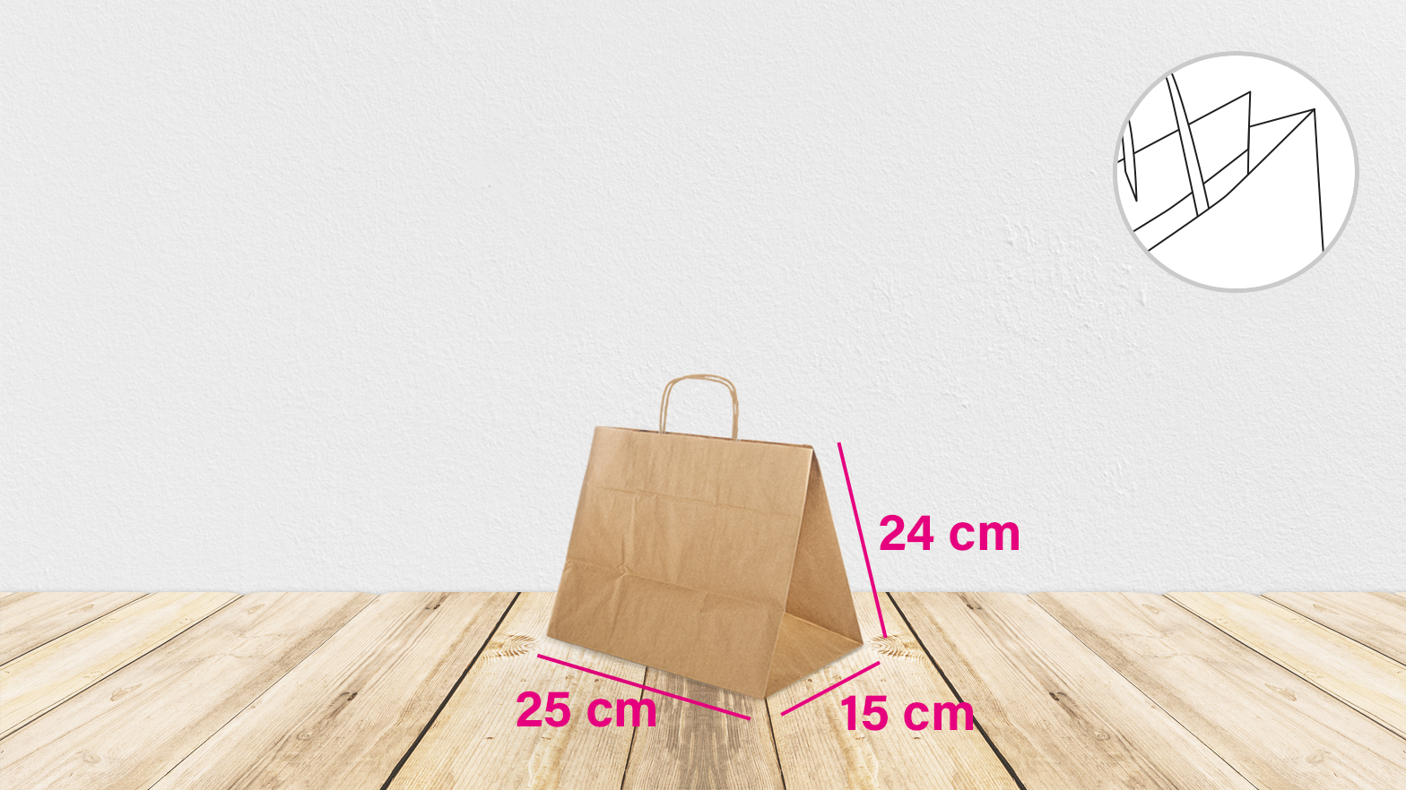 FONDO 25X15 – CARTA 110 GR – MANICO RITORTO CON RISVOLTO INTERNO SUPERIORE