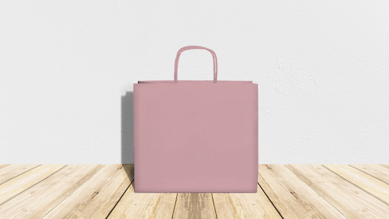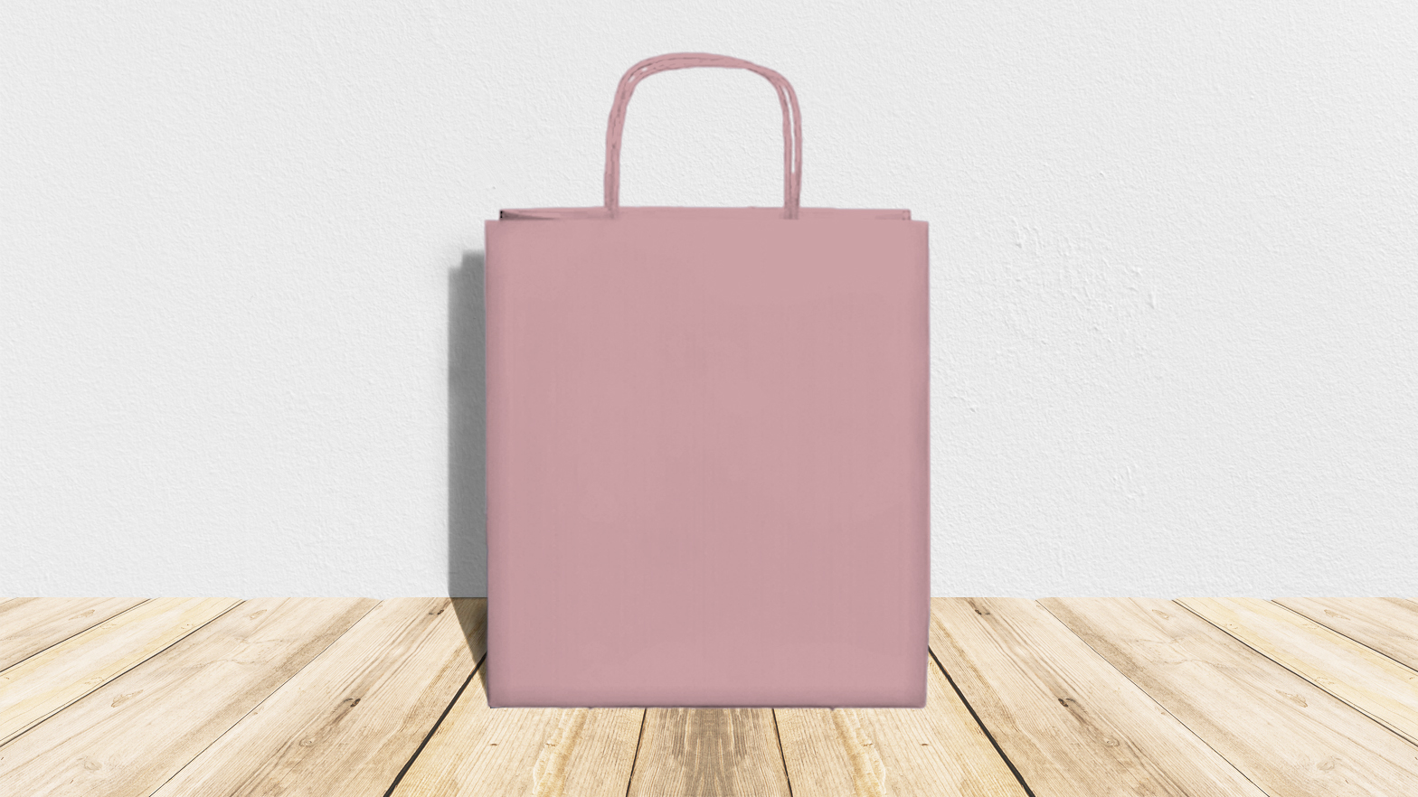 Modello Twisted – carta da 90 gr. colore rosa antico – manico in carta arrotolata – formato 18x8x24 cm – confezione da 450 shopper