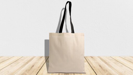 Shopper in cotone naturale 135 grammi, con manici neri lunghi