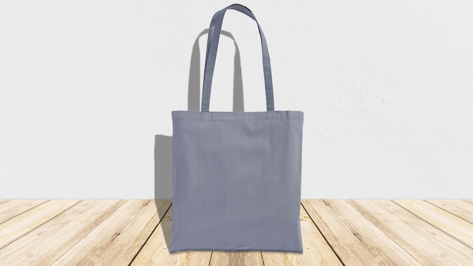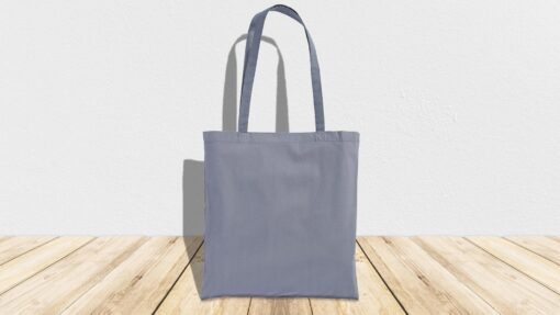 Tote bag riutilizzabile in cotone grigio da 130 gr personalizzabile. Formato 38 (larghezza) x 42 (altezza) cm. Manici lunghi 80 cm. Confezione da 100 shopper. Consegna in 5 giorni neutre e 20 giorni stampate