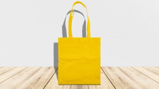 Modello Fair – materiale TNT da 70 gr. colore giallo – con soffietto – termosaldato – manici lunghi – formato 36x9x40 cm – confezione da 100 shopper