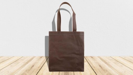 Modello Fair – materiale TNT da 70 gr. colore marrone – con soffietto – termosaldato – manici lunghi – formato 36x9x40 cm – confezione da 100 shopper