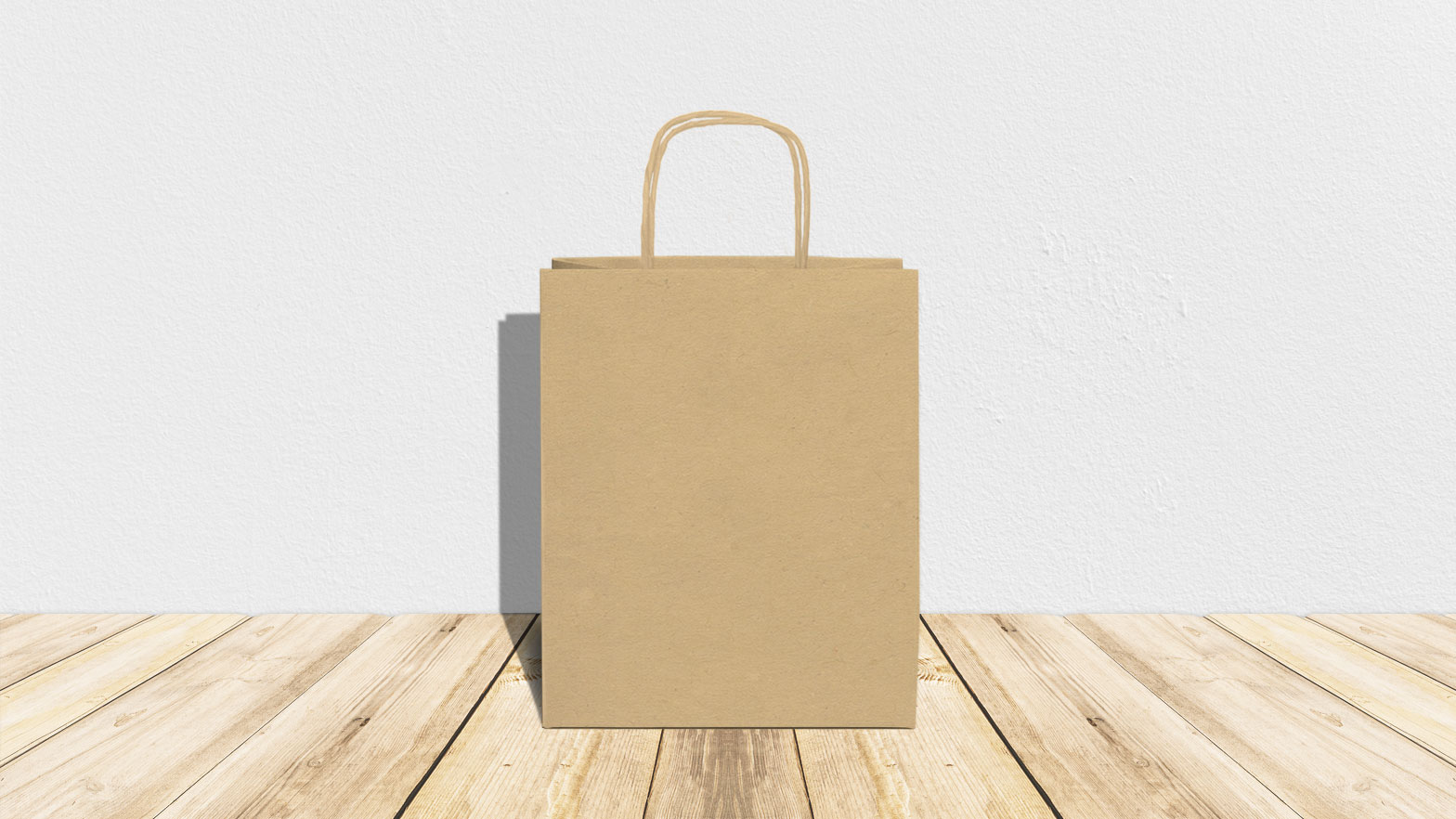 Modello Classic – carta avana riciclata da 100 gr. – manico ritorto – formato 32x13x42 cm – confezione da 250 shopper