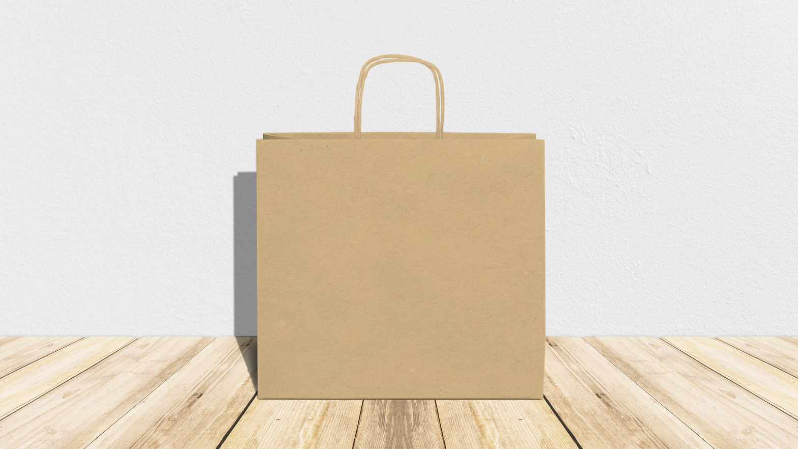 Sacchetto in carta riciclata avana, manico in carta ritorta avana