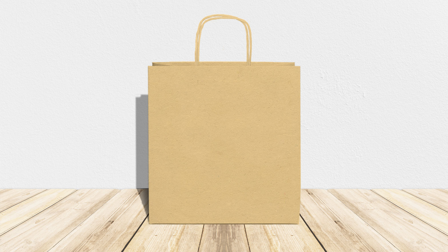 Modello Classic – carta avana riciclata da 110 gr. – manico ritorto – formato 44x14x50 cm – confezione da 150 shopper