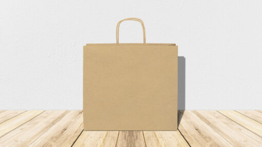 Modello Classic – carta avana riciclata da 110 gr. – manico ritorto – formato 42x13x37 cm – confezione da 250 shopper