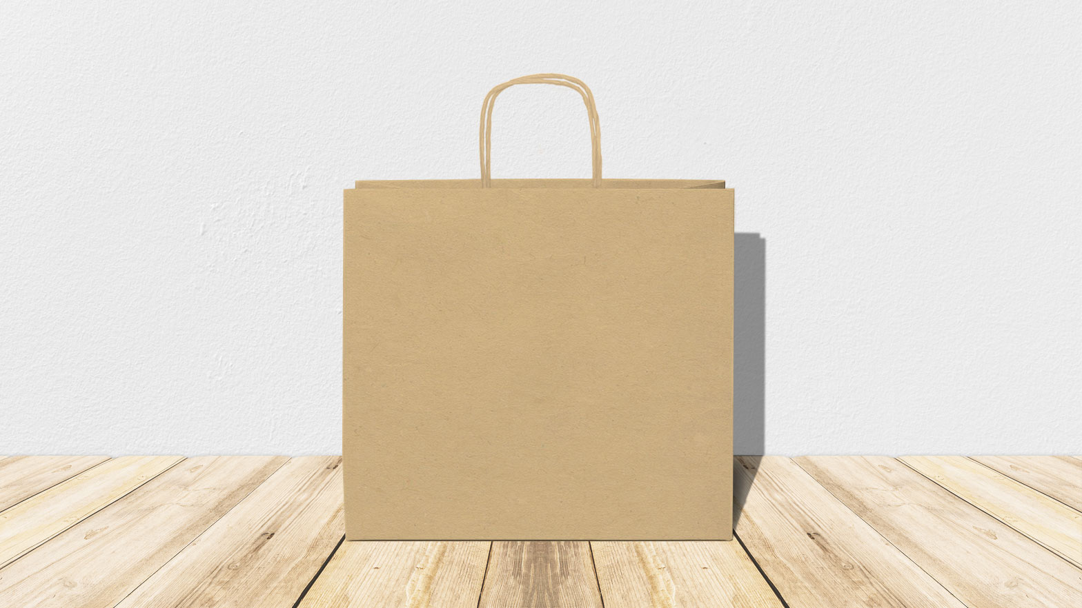 Sacchetto in carta riciclata avana, manico in carta ritorta avana