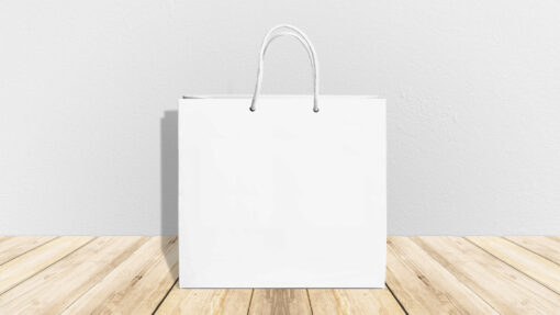 Sacchetto in carta bianca da 180 gr, manico in carta-cotone bianco.