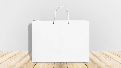 Sacchetto in carta bianca da 180 gr, manico in carta-cotone bianco.