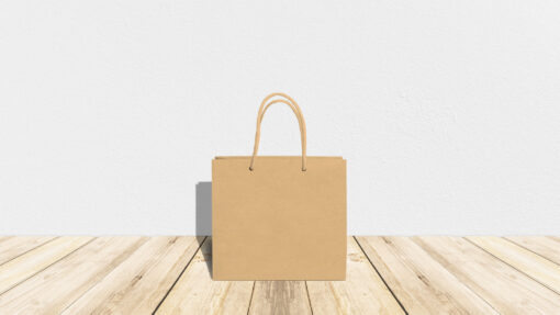 Sacchetto in carta riciclata avana da 180 gr, manico in carta-cotone.