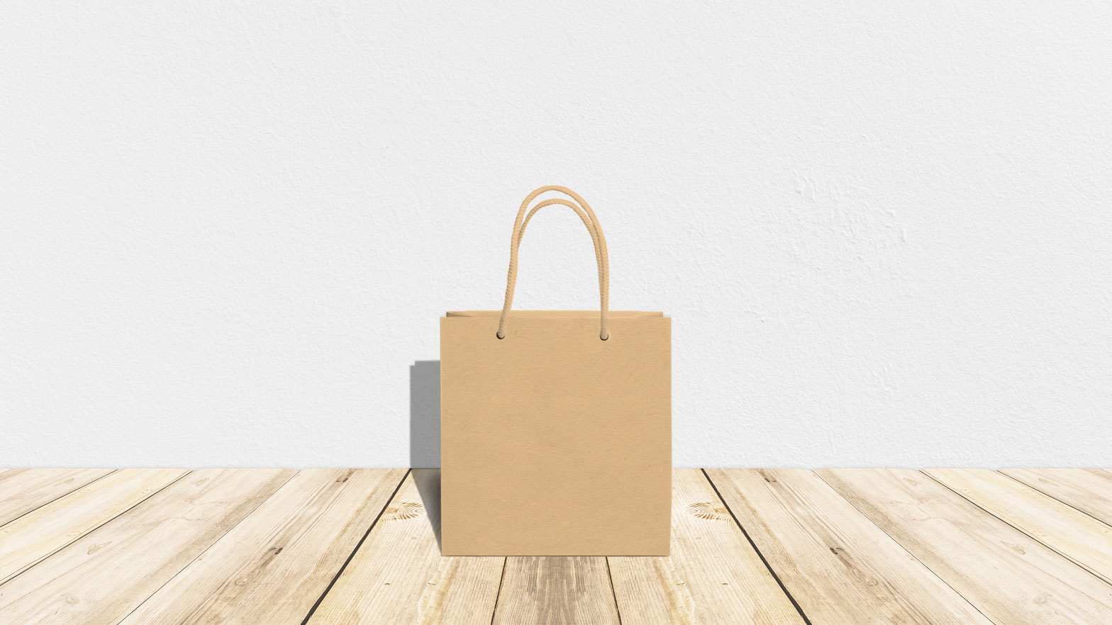 Sacchetto in carta riciclata avana da 180 gr, manico in carta-cotone.