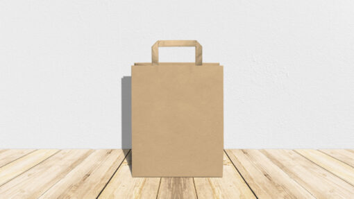 Modello Rainbow – carta avana riciclata da 100 gr. – maniglia piatta – formato 32x13x42 cm – confezione da 250 shopper