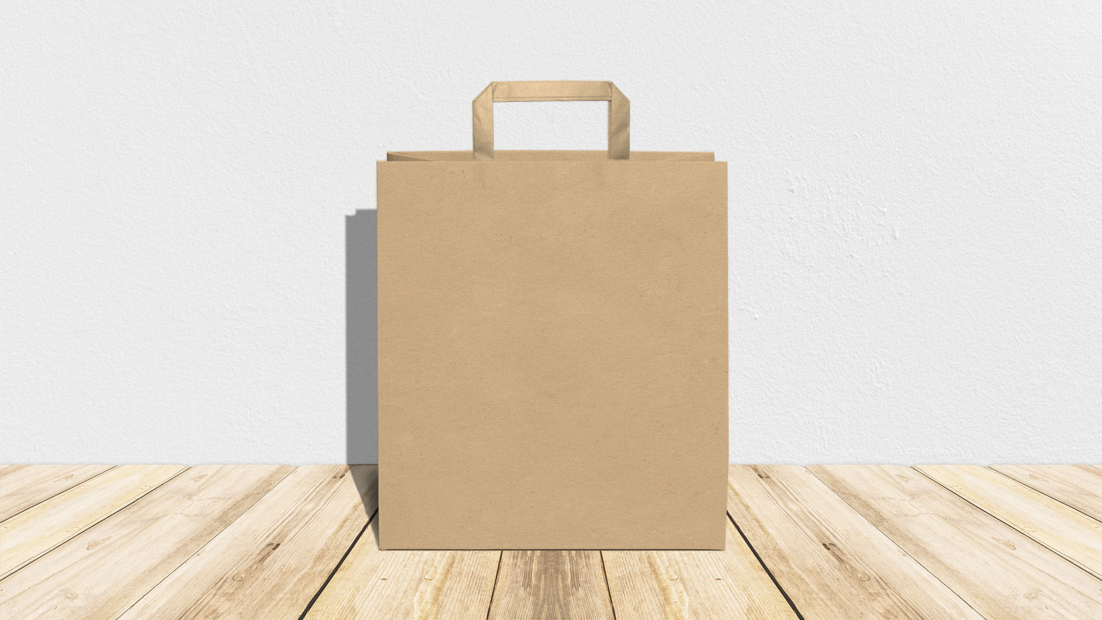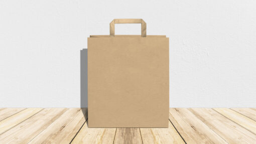 Sacchetto in carta riciclata avana, maniglia in carta piatta avana