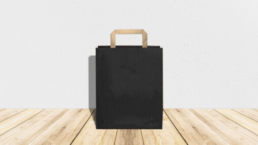 Sacchetto in carta riciclata avana color Nero, interno avana, maniglia in carta piatta avana