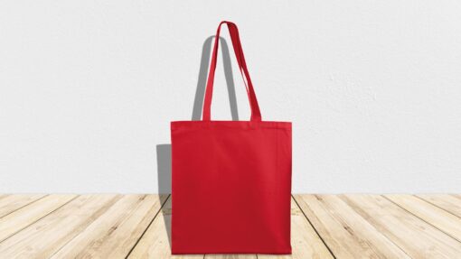 Modello Resistant – cotone colore rosso da 180 gr. – manici lunghi – formato 38x8x42 cm – confezione da 100 shopper