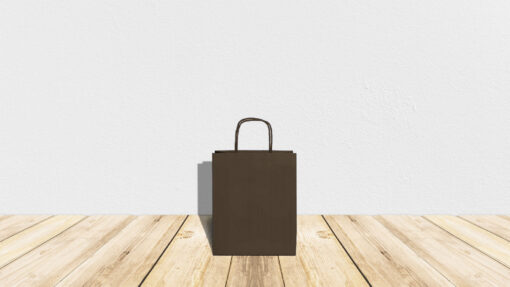 Modello Sealing – carta 100 gr. colore marrone (carta millerighe) – interno avana – manico ritorto – formato 18x8x25 cm – confezione da 300 shopper