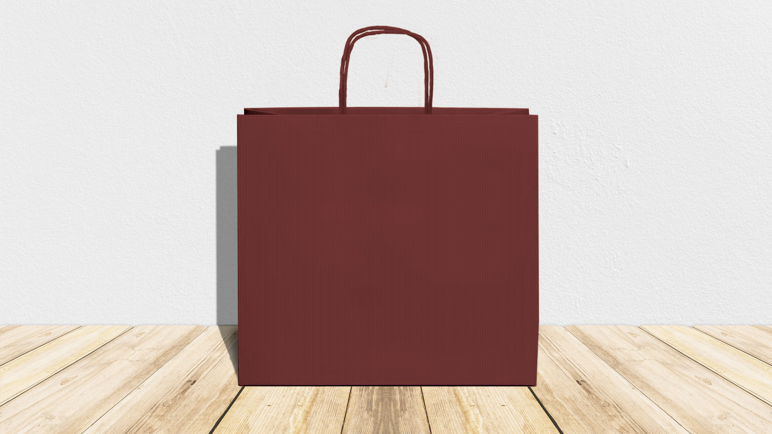 Modello Sealing – carta 120 gr. colore bordeaux (carta millerighe) – interno avana – manico ritorto – formato 54x14x50 cm – confezione da 125 shopper
