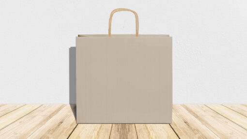 Modello Sealing – carta 120 gr. colore sabbia (carta millerighe) interno avana – manico ritorto – formato 54x14x50 cm – confezione da 125 shopper