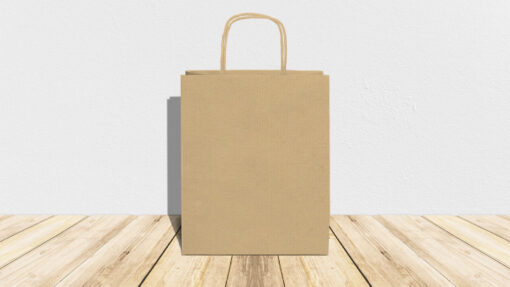 Modello Sealing – carta riciclata avana sealing (millerighe) 120 gr. – manico ritorto – formato 44x14x50 cm – confezione da 150 shopper