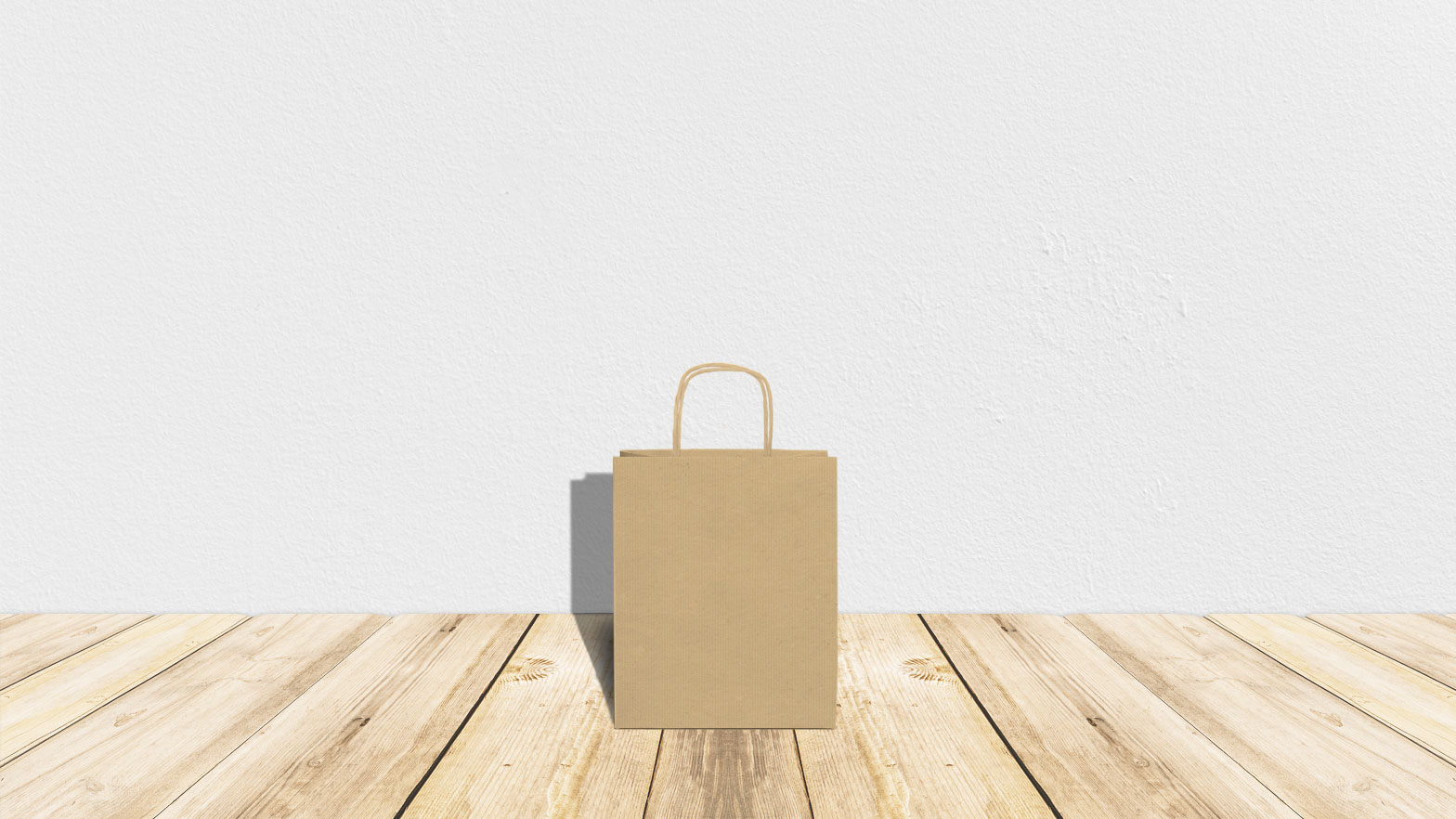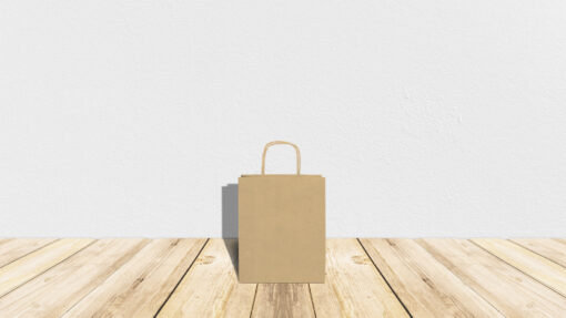 Modello Sealing – carta riciclata avana sealing (millerighe) 100 gr. – manico ritorto – formato 15x8x20 cm – confezione da 500 shopper