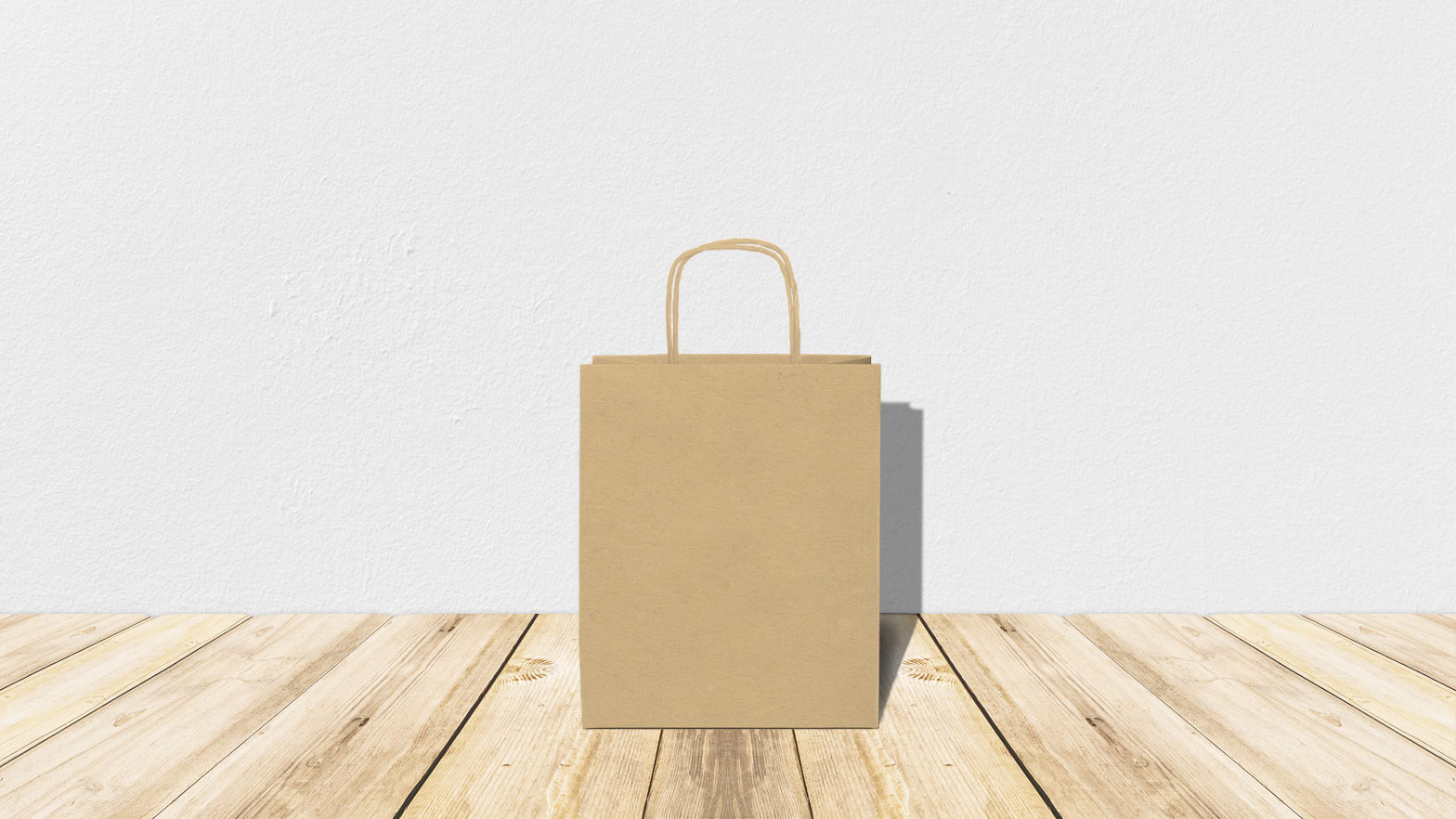 Sacchetto in carta riciclata avana, manico in carta ritorta avana.