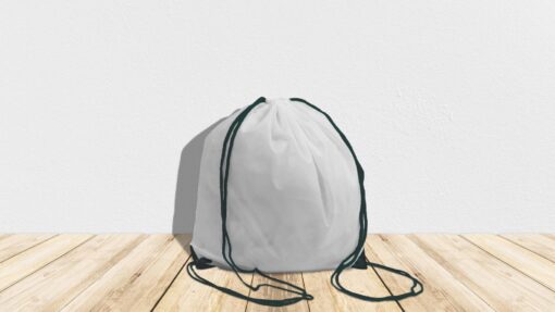 Zainetto bianco in poliestere 210 grammi, manici in vari colori, angoli rinforzati in tinta