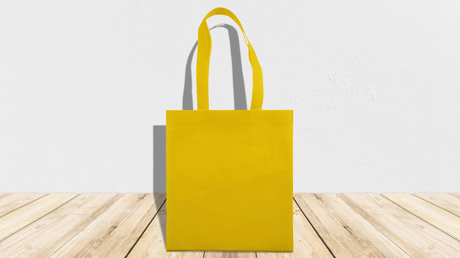 Modello Promotional – materiale TNT da 70 gr. colore giallo – cucito – manici lunghi – formato 38×42 cm – confezione da 100 shopper