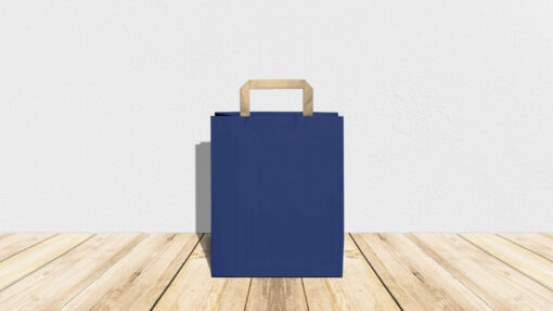 Sacchetto in carta riciclata avana color Blu, interno avana,  maniglia in carta piatta avana