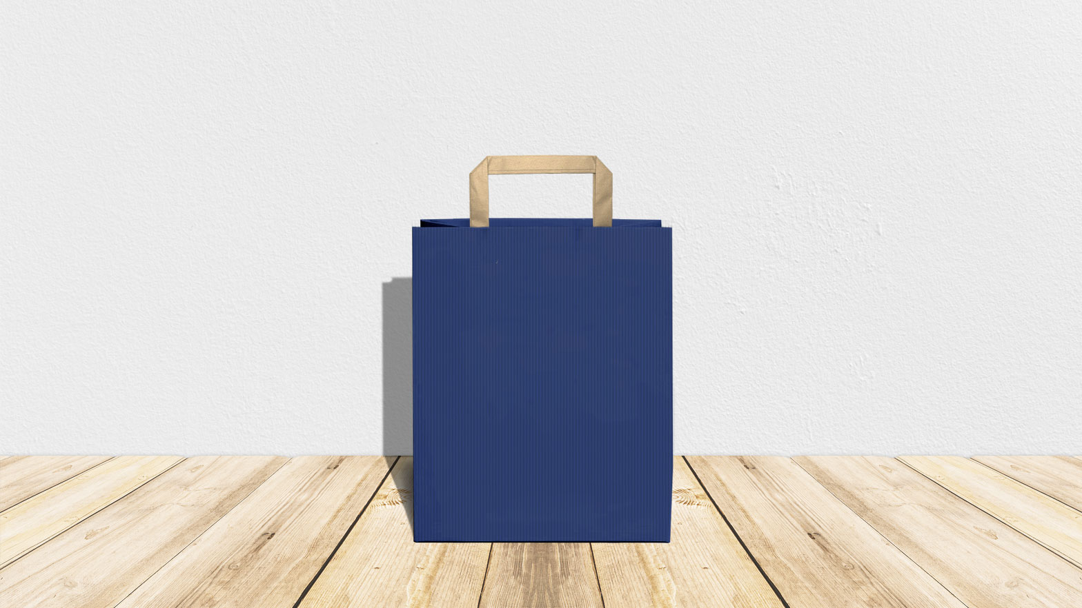 Modello Rainbow – colore blu sealing (millerighe) carta 100 gr. – carta interna avana – maniglia piatta – formato 26x11x38 cm – confezione da 350 shopper