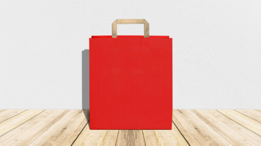 Modello Rainbow – colore rosso sealing (millerighe) carta 110 gr. – carta interna avana – maniglia piatta – formato 44x14x50 cm – confezione da 150 shopper