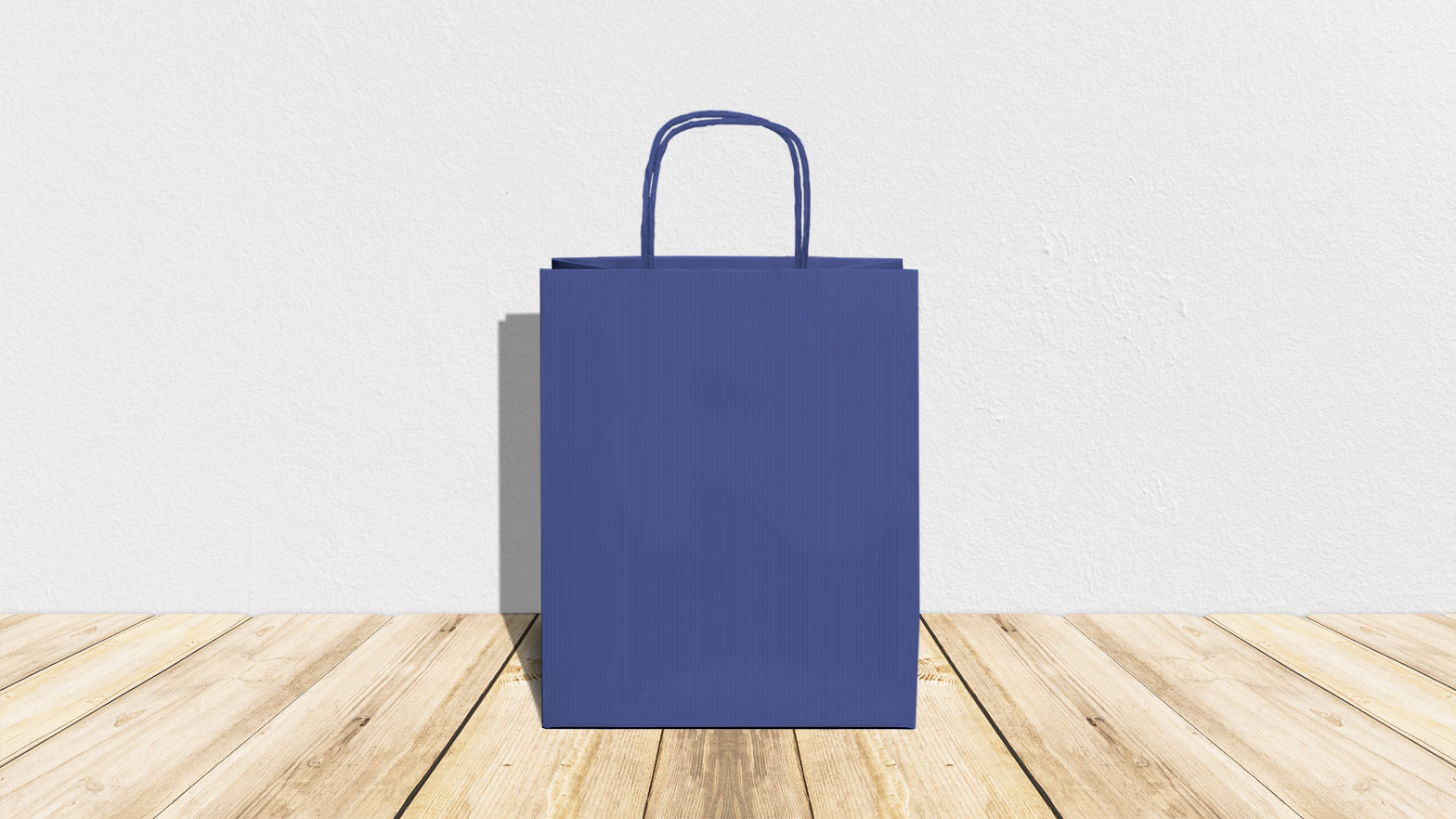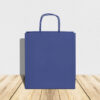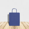 Sacchetto di carta kraft avana sealing (millerighe) con esterno color blu ed interno avana, manico in carta ritorta blu