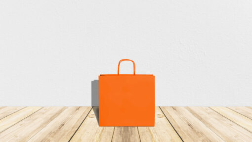 Modello Spring – carta 100 gr. colore arancio – manico ritorto – formato 25x11x24 cm – confezione da 250 shopper