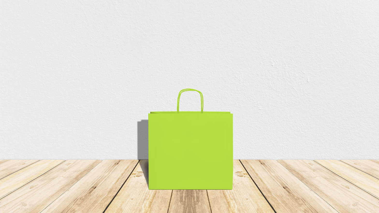 Sacchetto in carta kraft verde acido, corda in carta ritorta color verde acido