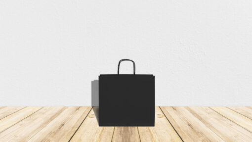 Modello Spring – carta 100 gr. colore nero – manico ritorto – formato 25x11x24 cm – confezione da 250 shopper