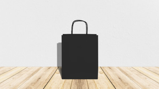 Modello Spring – carta 100 gr. colore nero – manico ritorto – formato 26x11x34 cm – confezione da 250 shopper