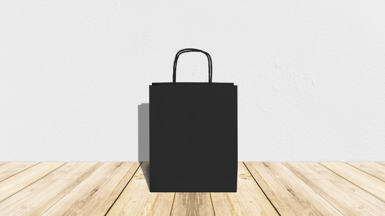 Sacchetto in carta kraft nera, corda in carta ritorta color nero