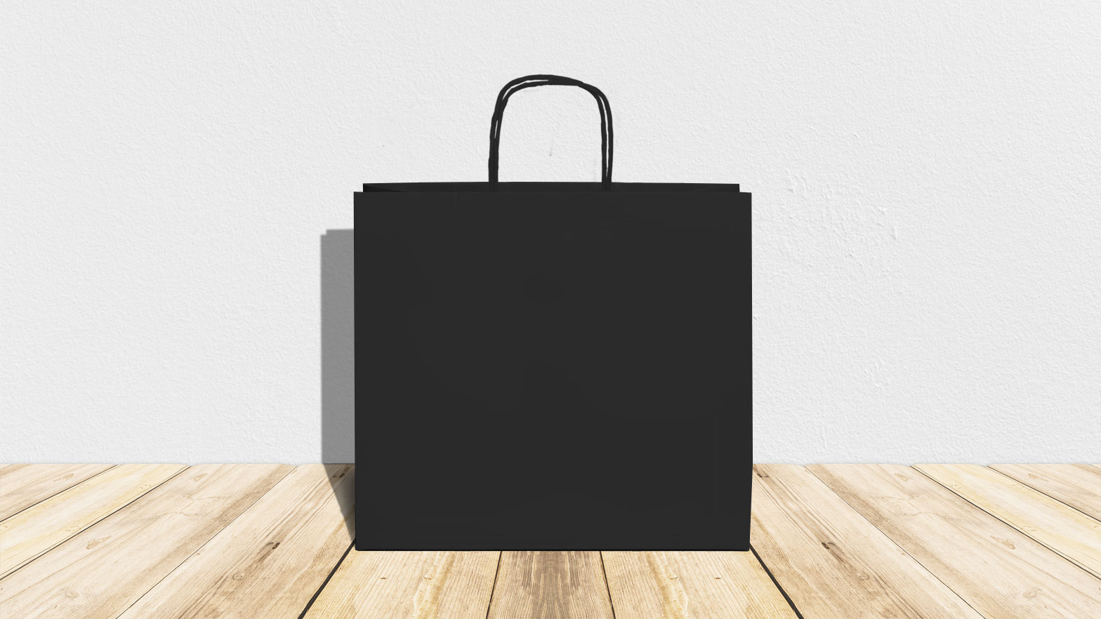 Sacchetto in carta kraft nera, corda in carta ritorta color nero