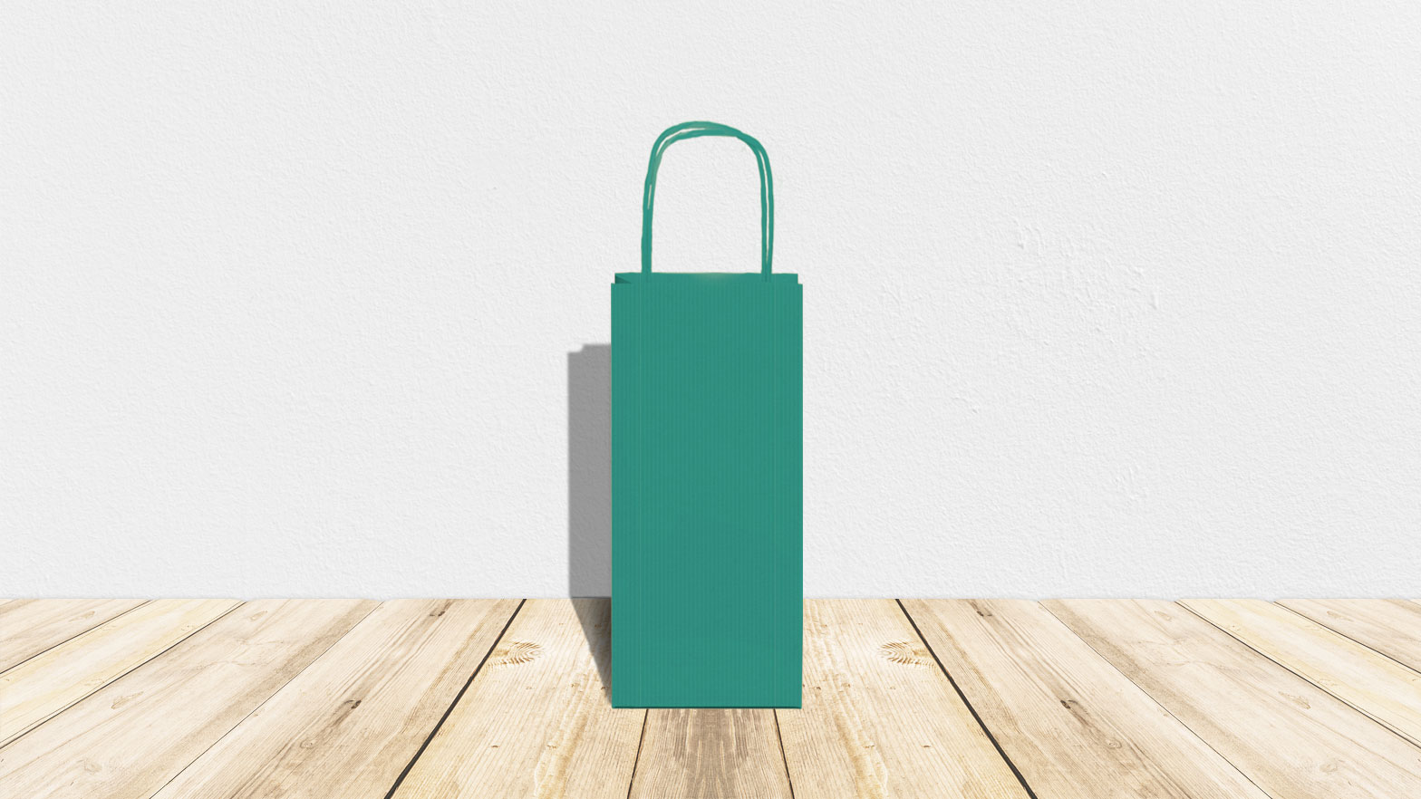 Modello Wine – colore verde sealing (millerighe) da 120 gr. – interno avana – manico ritorto – formato 15x8x40 cm – confezione da 300 shopper